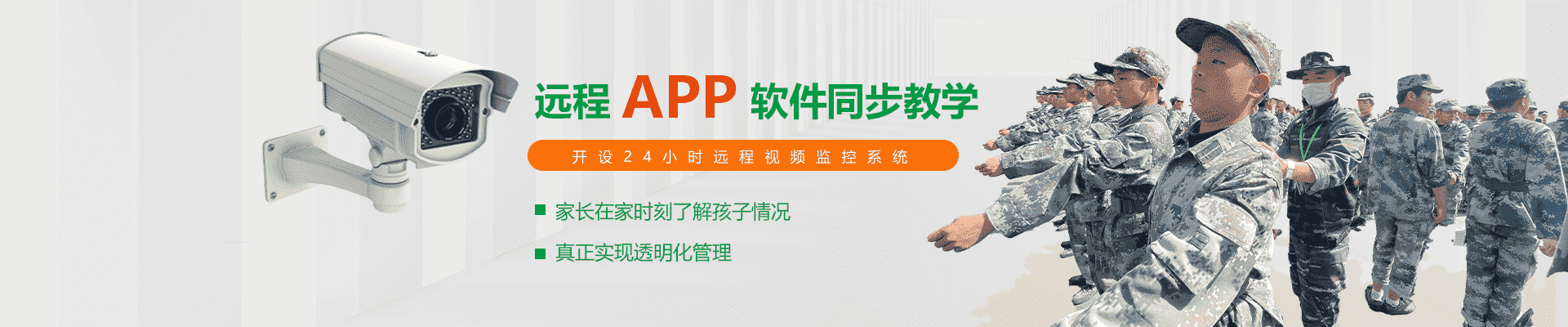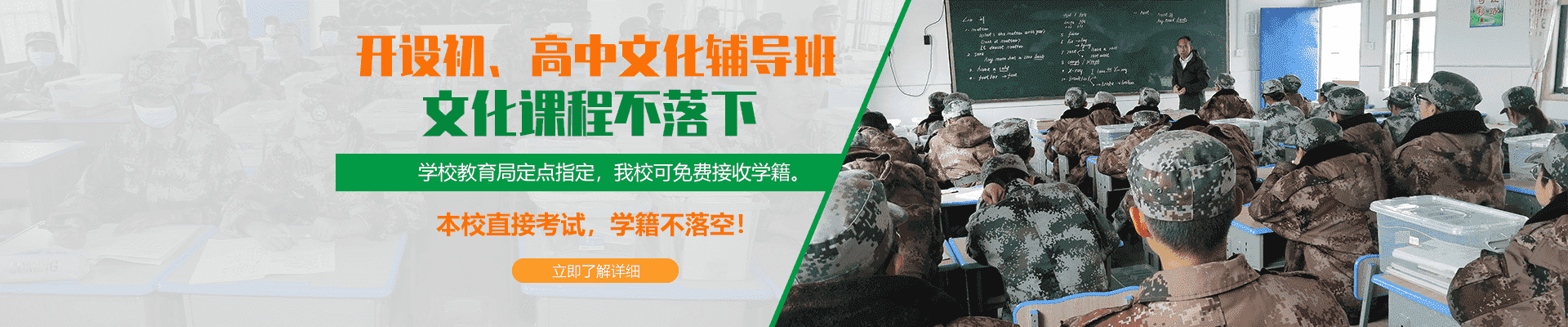 学校全封闭式军事化管理,老师教官学生同吃同住,学校 全年无休假,全托教学,培养孩子纪律意识,提高自我控 制力。